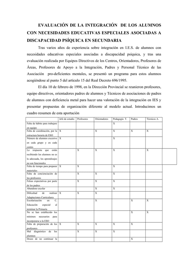 Evaluación de la integración de los alumnos con necesidades educativas