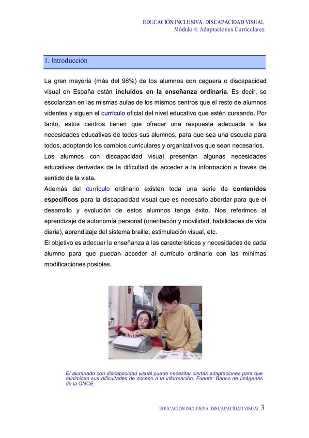 EDUCACIÓN INCLUSIVA DISCAPACIDAD VISUAL MÓDULO IV ADAPTACIONES