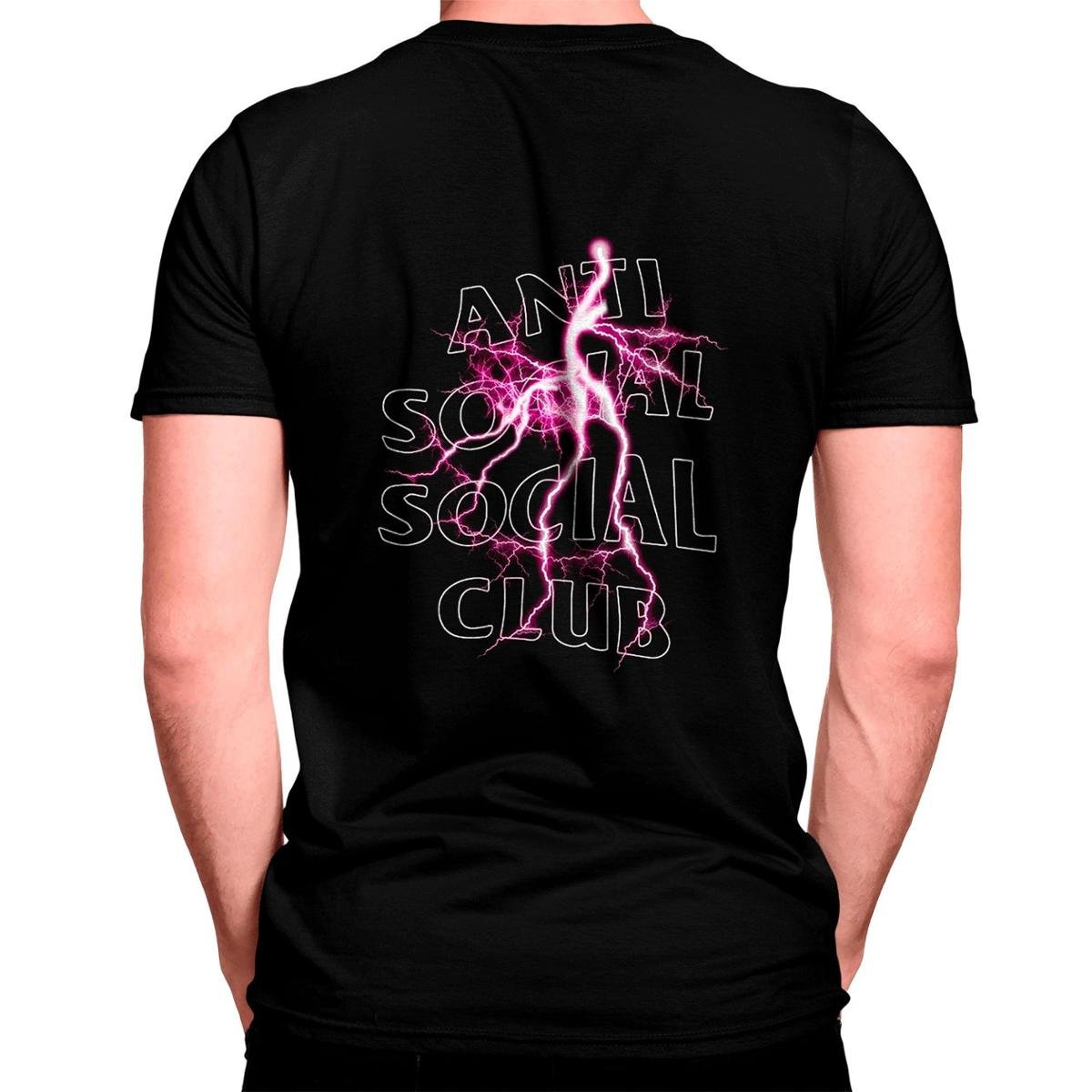Camiseta Anti Social Club Detalhe Raio Algodão TShirt Preto Netshoes