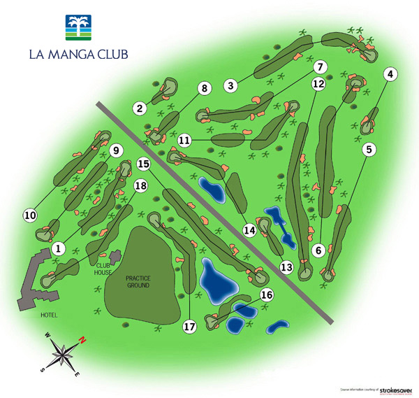 CAMPO SUR LA MANGA CLUB El Campo Sur de La Manga Club, es probablemente una de las pruebas de golf más justas que alguien puede encontrar. Ofrece un recorrido de 6,499 metros desde blancas, y es uno de los campos de más alto calibre para las competiciones y campeonatos, proporcionando un nuevo reto para el jugador de acuerdo a su handicap..