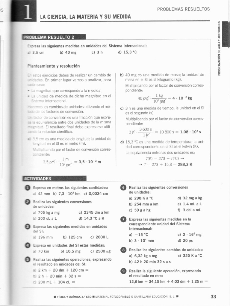 Física y Química 3º ESO SOLUCIÓN A LA ACTIVIDAD DE FACTORES DE CONVERSIÓN