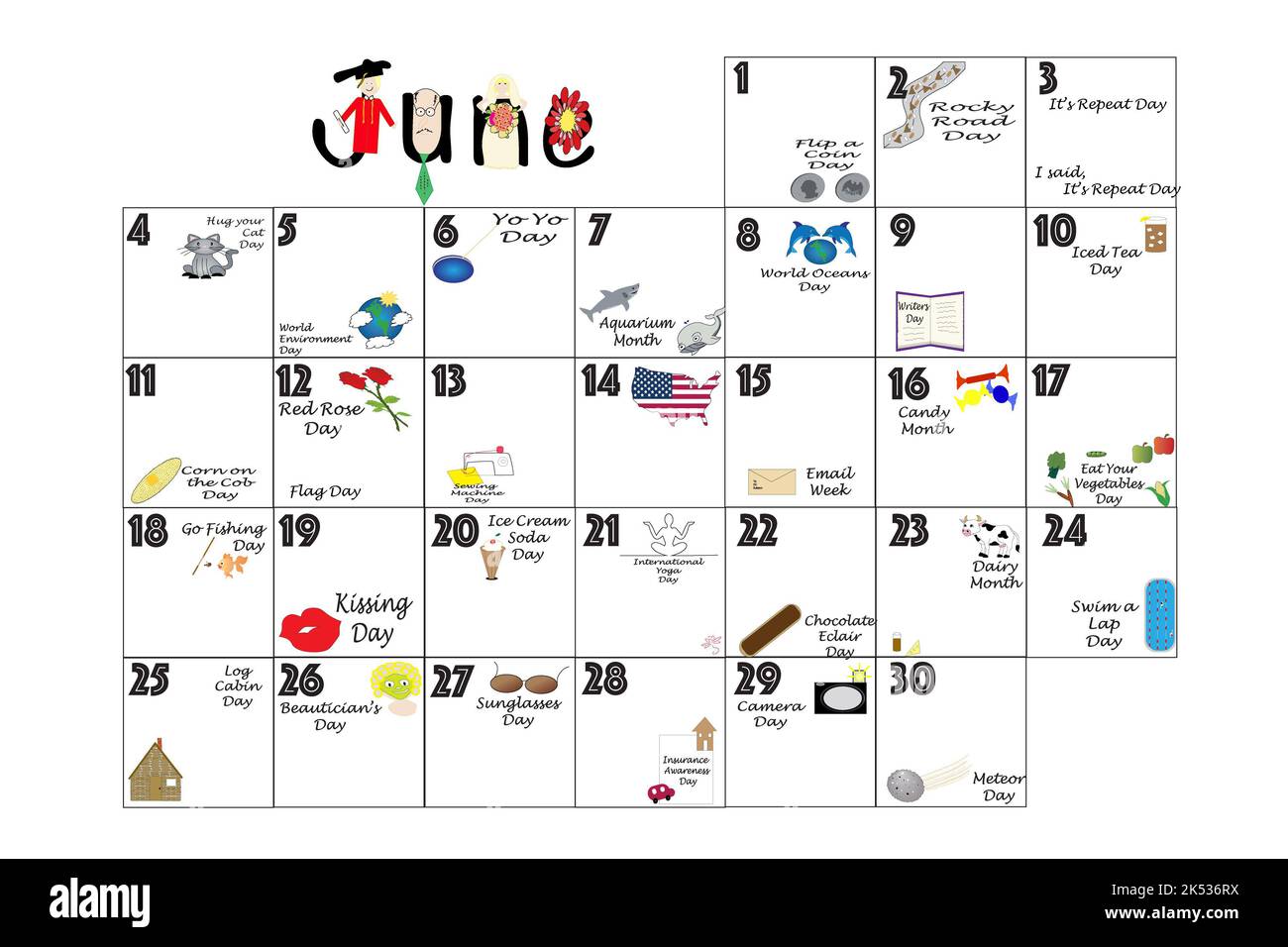 Calendario del 2023 de junio ilustrado con días festivos peculiares y