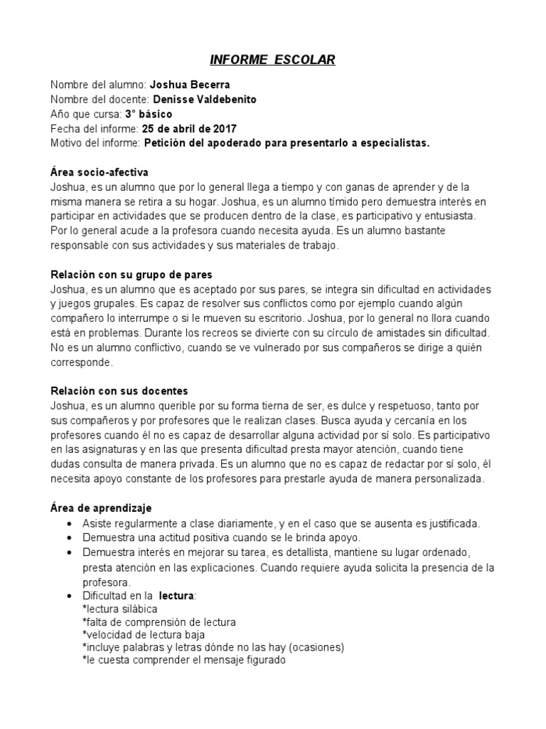 Modelo De Informe Escolar De Un Alumno Noticias Modelo EB6