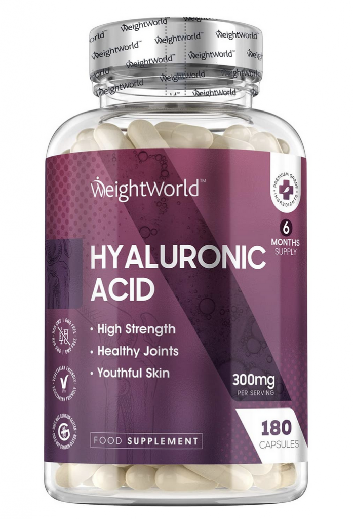 Hyaluronic Acid 120mg de Solgar. Este producto tiene una mayor proporción, hasta 120 mg, y además también incluye Vitamina C (100 mg), y el compuesto Biocell Collagen II, una combinación única de colágeno hidrolizado tipo II (60%), sulfato de condroitina (20%) y ácido hialurónico (10%) que ha demostrado clínicamente que promueve la salud del tejido conectivo de las articulaciones y la.
