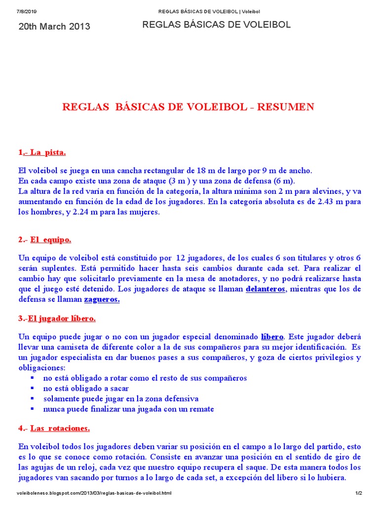 Reglas básicas voleibol.pdf Vóleibol Ocio Prueba gratuita de 30 días Scribd